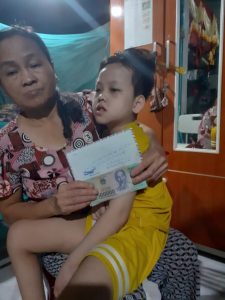 Một trường hợp khác là gia đình hai em Nguyễn Văn Nhất (2005) và em Nguyễn Thị Kim Ngân (2017), con mẹ Bùi Thị Lệ ở Thôn 4, Cẩm Thạch, Cẩm Xuyên, Hà Tĩnh. Mẹ Lệ có 3 con thì 2 con bị bại não. Hàng ngày, mẹ ở nhà chăm con, còn bố Nguyễn Văn Nhẫn làm nông và ai thuê mướn gì thì làm nấy. Lũ lên ngập hết nhà cửa, đồ đạc, cả gia đình phải đi sơ tán, dựng tạm lán để ở. Với khoản hỗ trợ 5,000,000 đồng từ Quỹ ứng phó khẩn cấp, mong rằng gia đình hai em bớt phần nào khó khăn, sớm ổn định cuộc sống.