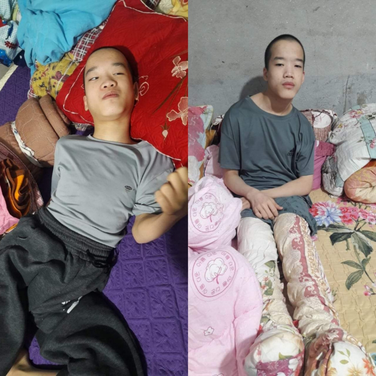 Cả 2 anh em đều bị bại não, anh trai bị nặng đặt đâu nằm đấy, hoàn cảnh gia đình làm nông vô cùng khó khăn.