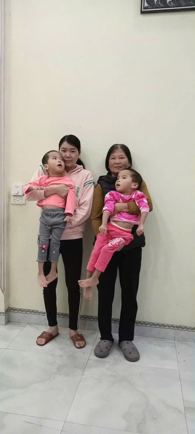 Hai em sinh đôi đều bị bại não, mẹ và bà nội đưa hai em đi điều trị ngoài Hà Nội. Kinh tế phụ thuộc hoàn toàn vào bố.