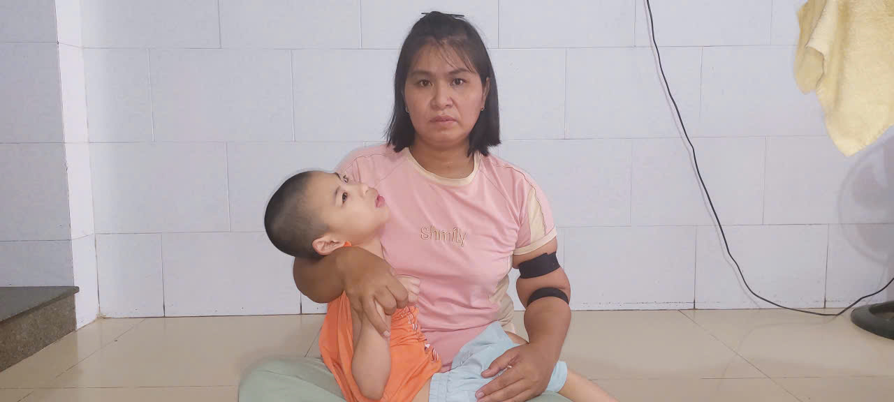 Em bị bại não mức độ nặng, mẹ em là mẹ đơn thân một mình chăm nuôi con và gồng gánh thêm cả em ruột cũng mắc bệnh bại não.