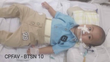 Bảo Đăng sinh 2016 bị tim bẩm sinh. Do sơ suất của bệnh viện trong quá trình phẫu thuật tim mà hiện nay, em không tự thở được, phải lắp ống thở nhân tạo, động kinh, bại não. Thời gian em ở viện nhiều hơn ở nhà. Mẹ em là mẹ đơn thân, một mình chăm nuôi con. Không có tiền để ra nước ngoài phẫu thuật, hàng ngày em phải sống chung với máy hút đờm.