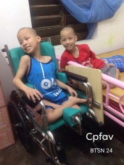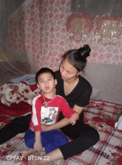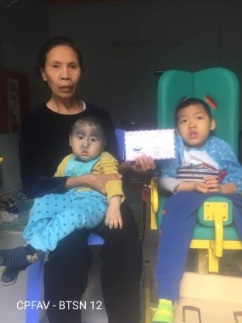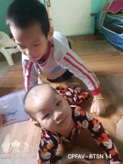 Hai anh em bị tổn thương não từ khi lọt lòng, mẹ các em là mẹ đơn thân một mình nuôi 2 con bị bại não. Hoàn cảnh gia đình vô cùng khó khăn, 2 anh em thường chơi với nhau vì chỉ có mình mẹ làm việc gồng gánh chăm nuôi, săn sóc 2 con.