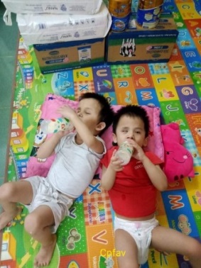 Cả 2 em sinh ra đều không may mắc chứng bại não, hiện vẫn phụ thuộc hoàn toàn mẹ chăm sóc. Mẹ phải nghỉ làm để chăm các con.